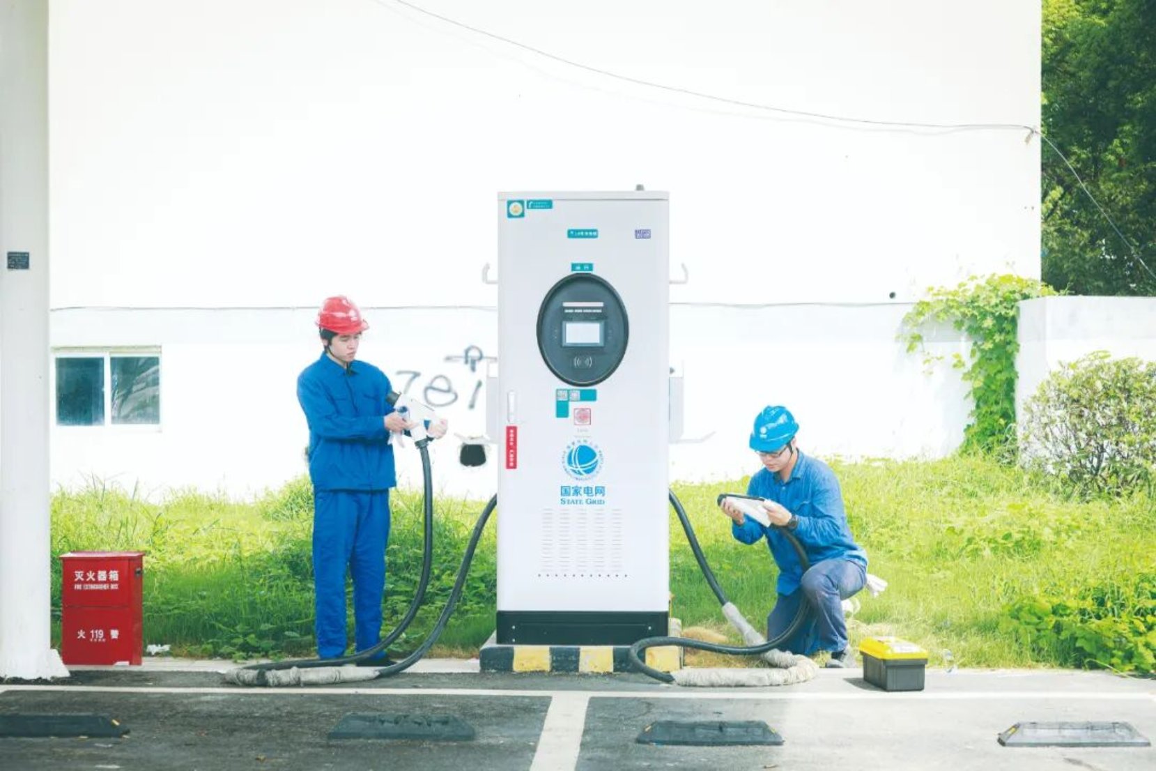 ▲图为国网宁波供电公司工作人员在宁波市福明智慧充电站检查充电设备。洪浩哲/摄