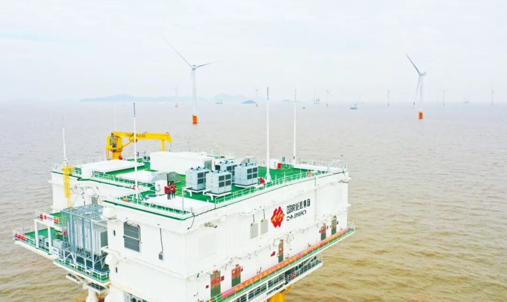 ▲图为国电象山1号海上风电项目。王幕宾/摄