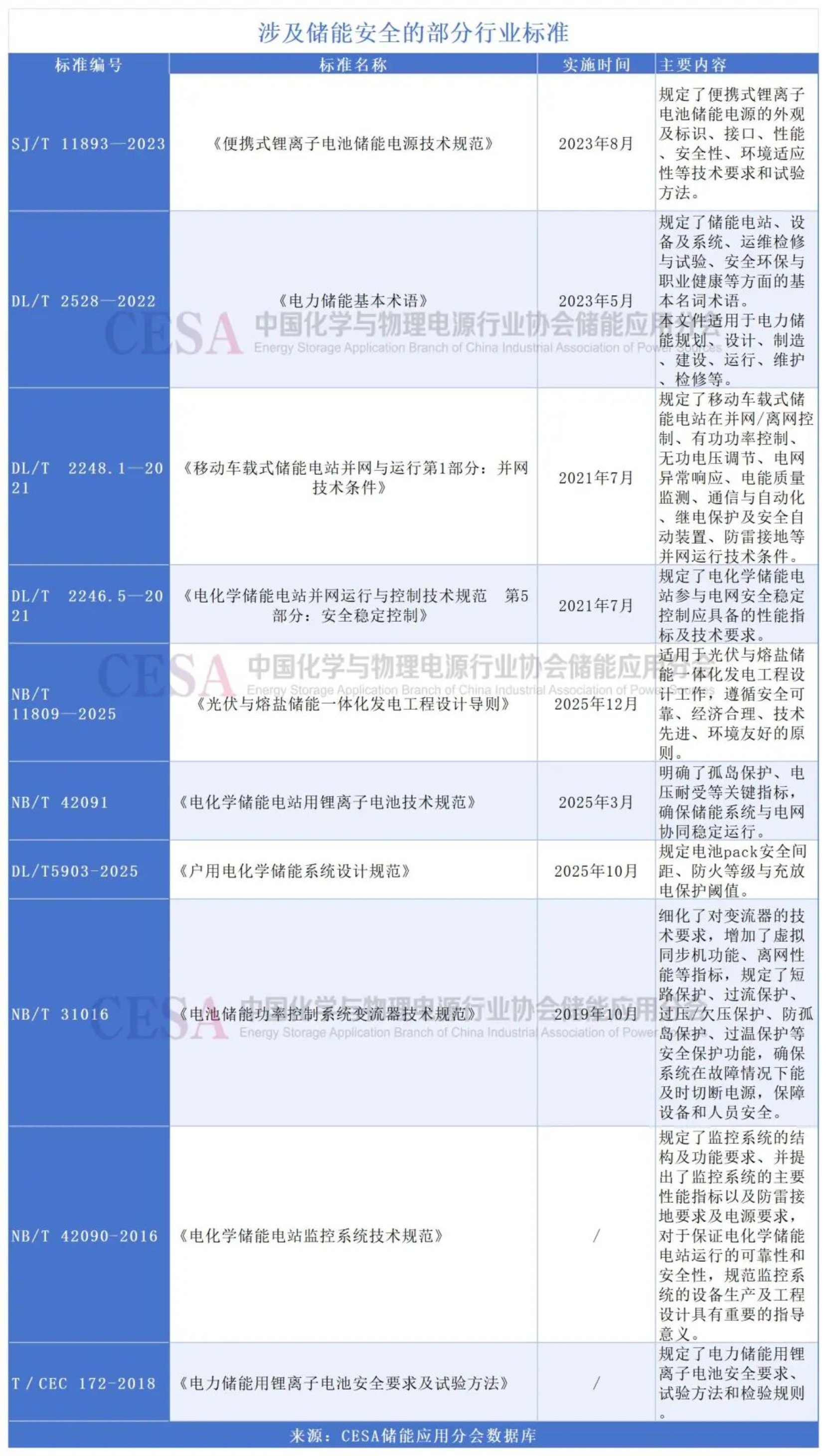 行业标准聚焦细分领域与技术创新,成为国家标准的重要延伸与补充。针对储能系统不同应用场景和技术路线,行业标准构建了专业化的安全规范体系。