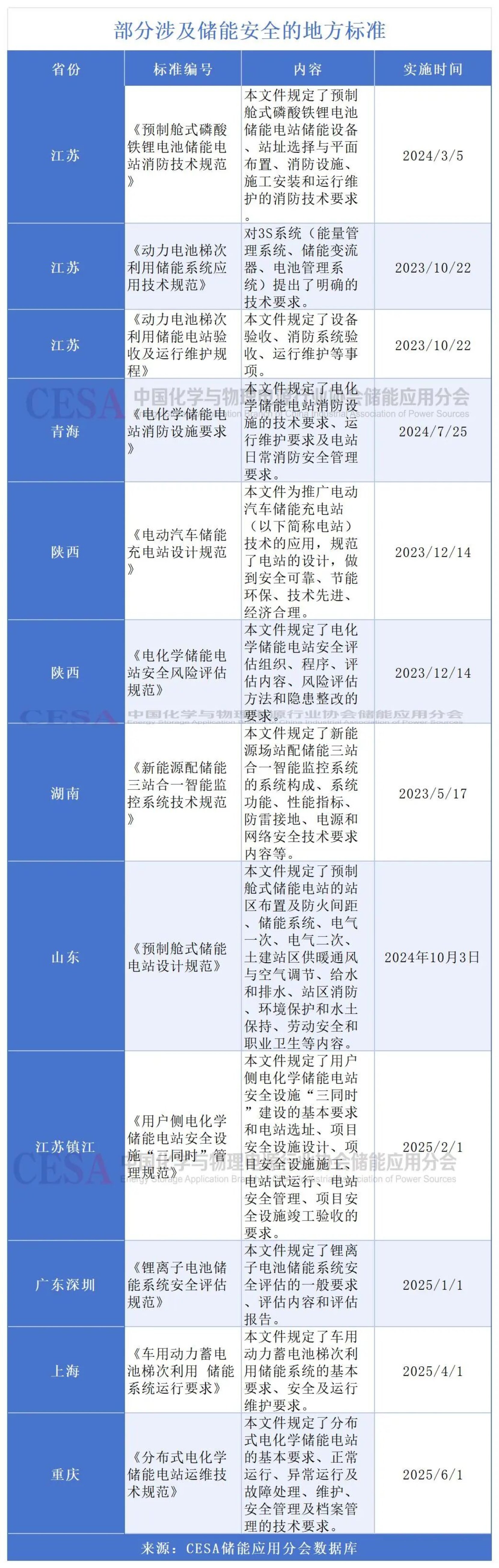 据CESA储能应用分会不完全统计,截至目前,至少有十余个省份出台涉及储能安全的地方标准。