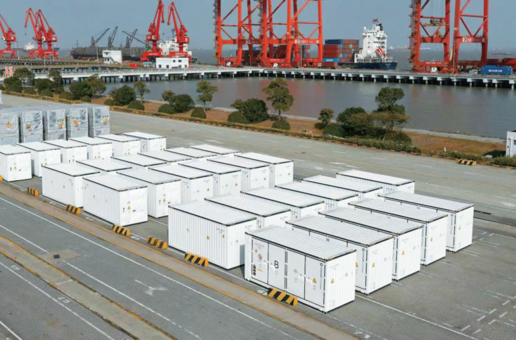 ▲图为12月1日,全球首款搭载千安时电芯的6MWh+级长时储能预制舱正在等待装船发往海外。这标志着我国锂电长时储能系统在全球市场已具备规模化应用能力。