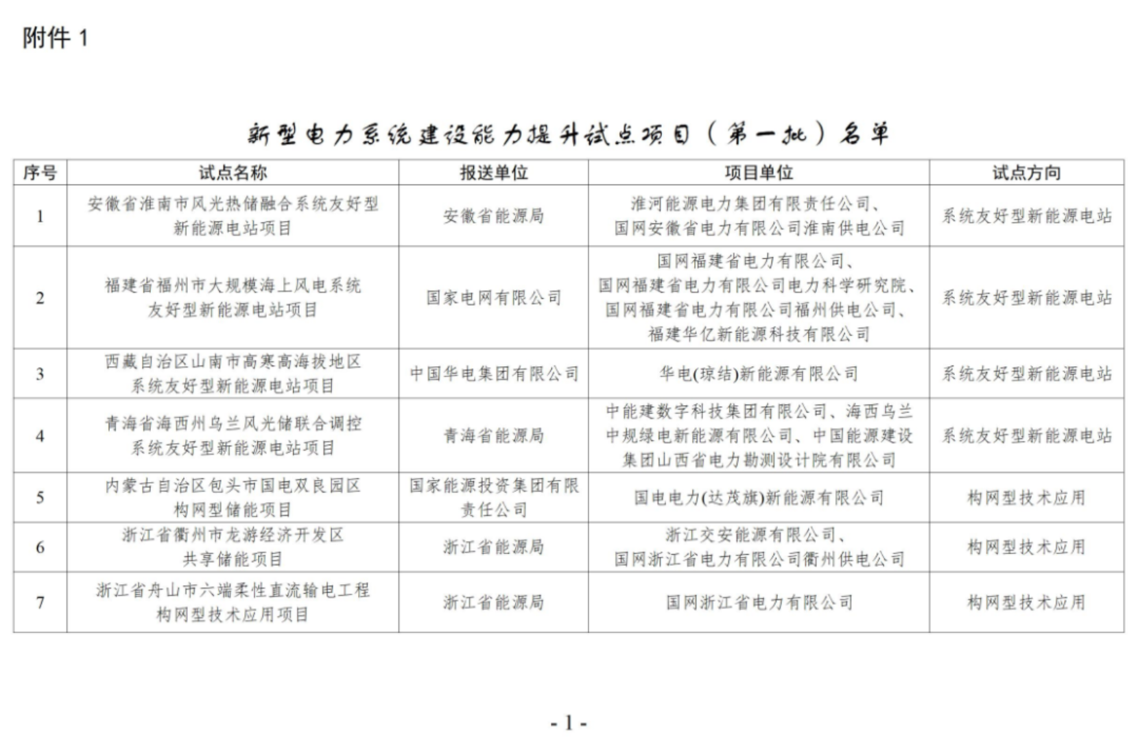 1.新型电力系统建设能力提升试点项目(第一批)名单