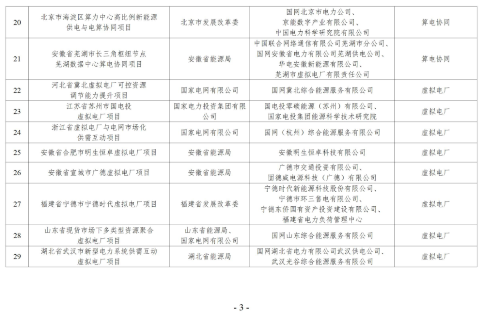 新型电力系统建设能力提升试点项目(第一批)名单