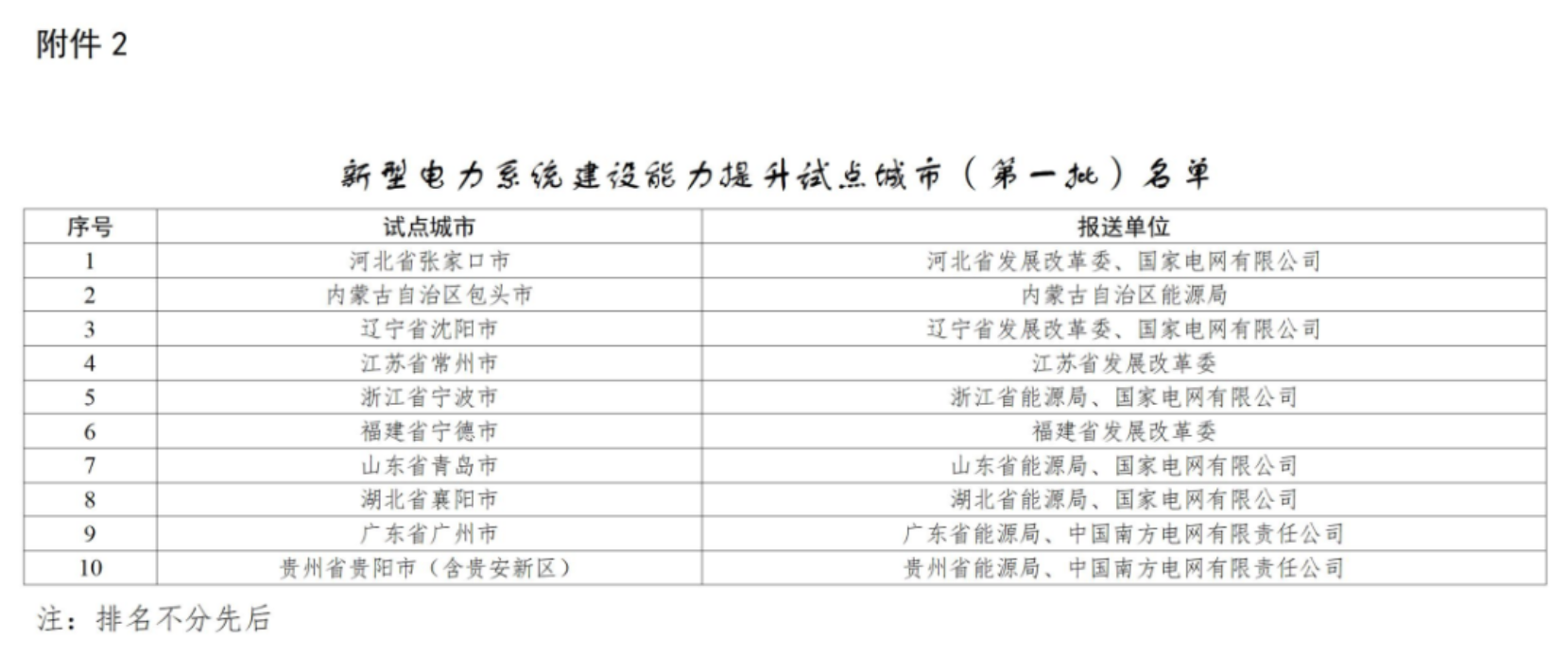 2.新型电力系统建设能力提升试点城市(第一批)名单