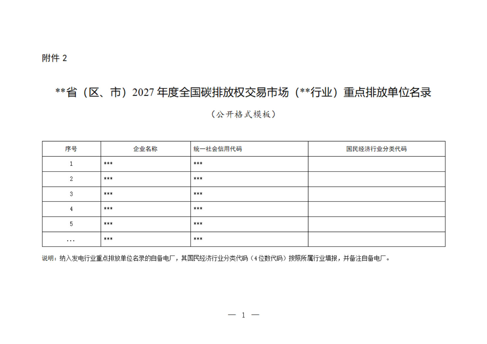 2.**省(区、市)2027年度全国碳排放权交易市场(**行业)重点排放单位名录(公开格式模板)