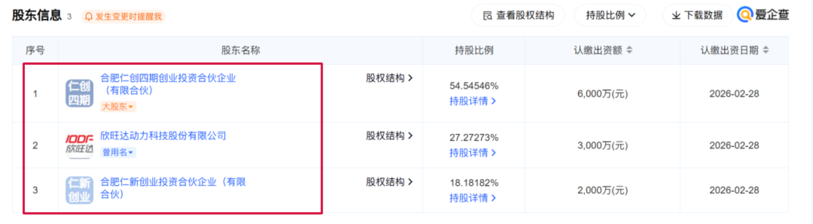 根据股权穿透显示,该公司由合肥仁创四期创业投资合伙企业(有限合伙)、欣旺达动力科技股份有限公司等共同持股。其中,合肥产投和合肥建投两家国资平台合计持股超过54%,显示出地方政府对储能产业的高度重视和强力支持。