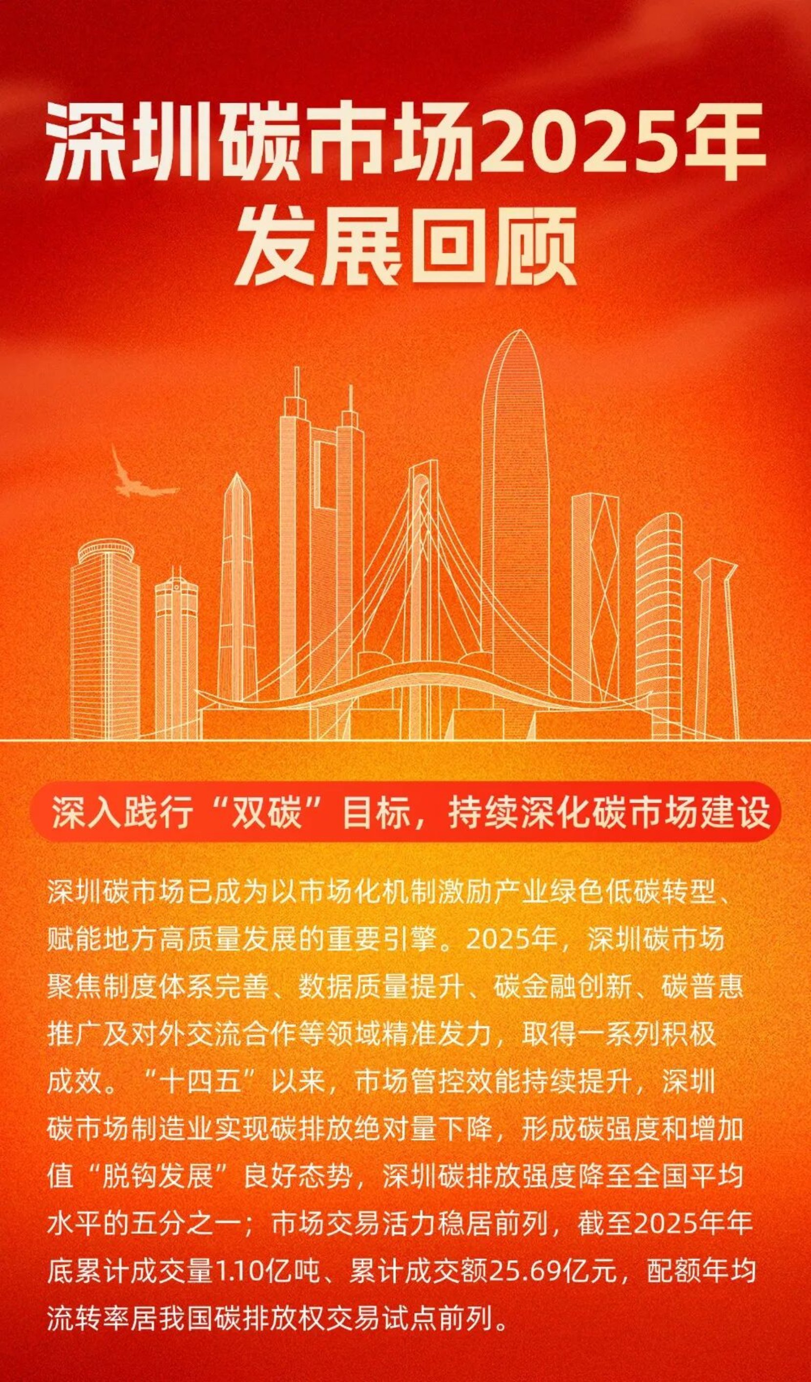 日前,深圳市生态环境局发布深圳碳市场2025年发展回顾。截至2025年年底深圳碳市场累计成交量1.10亿吨、累计成交额25.69亿元,配额年均流转率居我国碳排放权交易试点前列。
