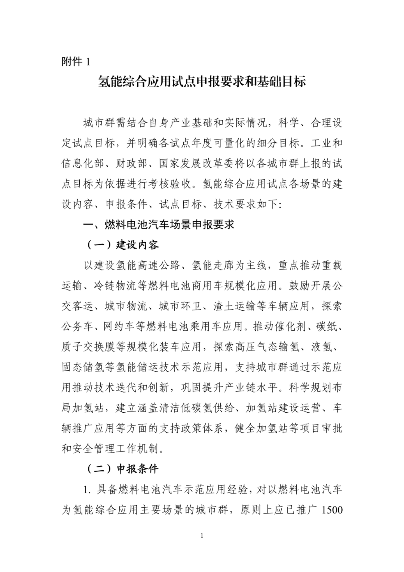 1. 氢能综合应用试点申报要求和基础目标