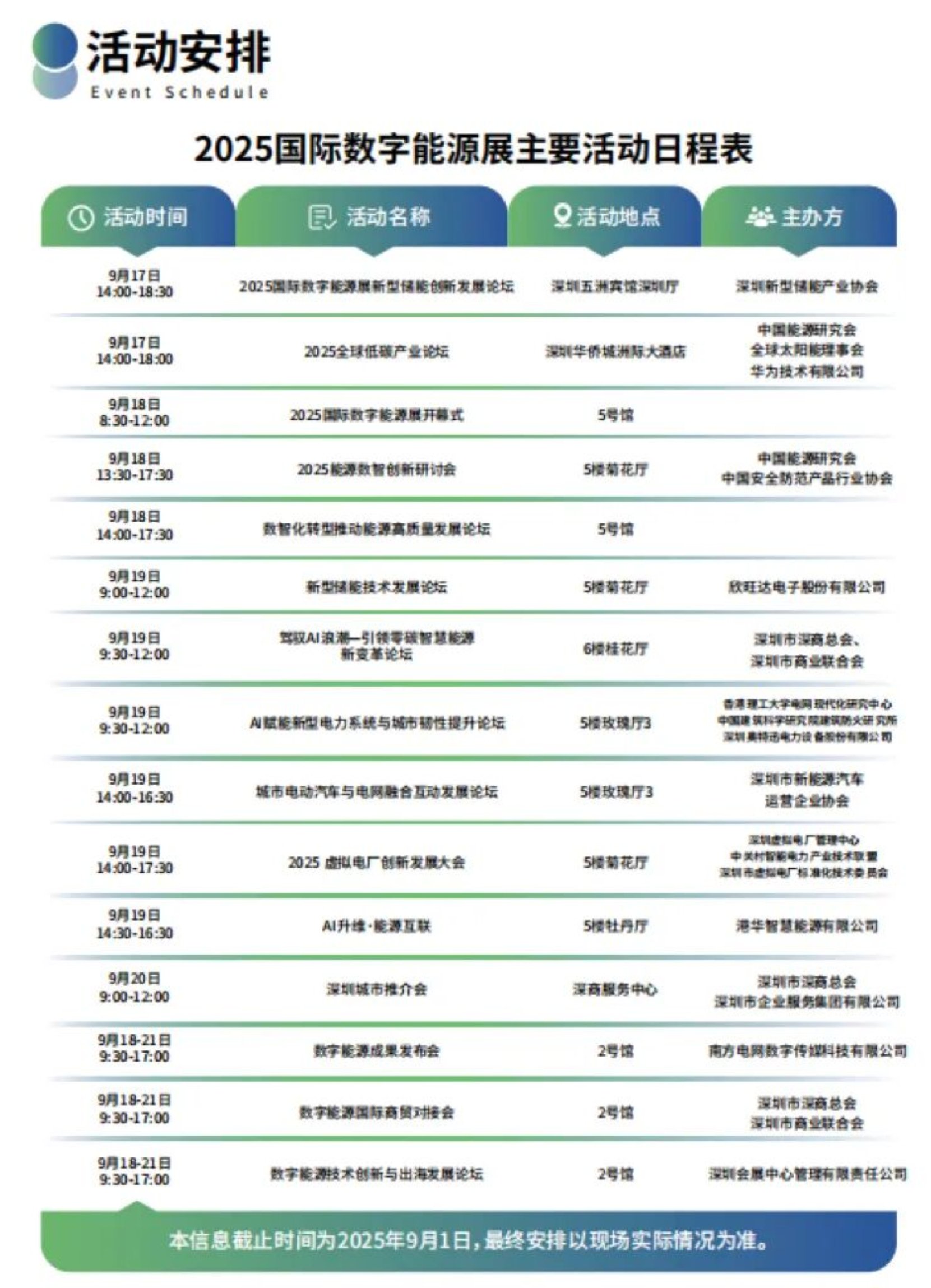 2025年9月18日至21日,2025国际数字能源展将在深圳会展中心举行,展会以"深AI能源,数创未来"为主题,引领全球数字能源行业风向。本届展会将以更广阔的视野、更前沿的视角,抢抓数字能源产业发展新机遇,加快建设数字能源先锋城市,携手全球各界为应对全球气候变化、助力实现"双碳"目标作出更大贡献。
